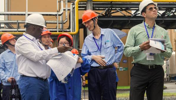 7月5日上午,OPCW視察組和國家代表、省市陪同人員在聽取核查前情況介紹后,共同前往公司生產(chǎn)區(qū)域進行了現(xiàn)場核查。視察組一行在察看企業(yè)總平面布置之后,分別對生產(chǎn)裝置、工藝流程等作了詳細了解,核實了企業(yè)生產(chǎn)經(jīng)營中的相關記錄、原始臺賬、報表等,公司陪同人員客觀、專業(yè)的回答了核查組提出的各類問題。